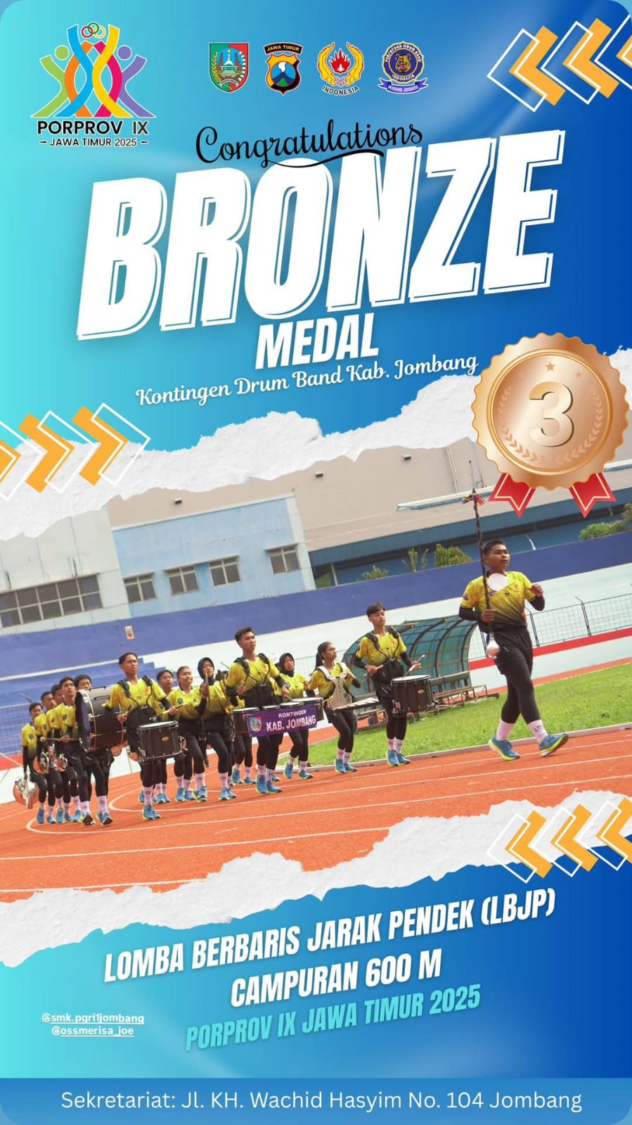 Cabang olahraga drumband kembali menunjukkan geliatnya dalam ajang Pekan Olahraga Provinsi (Porprov) IX Jawa Timur 2025. Animo peserta terus meningkat dari tahun ke tahun, menandakan tumbuhnya minat serta pembinaan yang semakin serius di daerah. Pada Porprov ke IX yang di gelar di Stadion Gajayana Malang, tim drumband Kabupaten Jombang ikut berpartisipasi dan Alhamdulillah berhasil membawa pulang juara 3 ( perunggu ).  Nomer pertandingan yang didapatkan tim drumband kabupaten Jombang yaitu Lomba Berbaris Jarak Pedek ( LBJP ) Campuran 600 meter.  Keberhasilan tim drumband Kabupaten Jombang tidak terlepas dari dukungan SMK PGRI 1 Jombang. Wujud dukungan SMK PGRI 1 Jombang untuk drumband Kabupaten Jombang yang pertama, tempat latihan dan alat-alat drumband dari SMK PGRI 1 Jombang. Yang kedua, mayoritas pemain  dari siswa dan alumni SMK PGRI 1 Jombang.  Yang ketiga, pelatih drumband juga pelatih ekstra drumband SMK PGRI 1 Jombang.